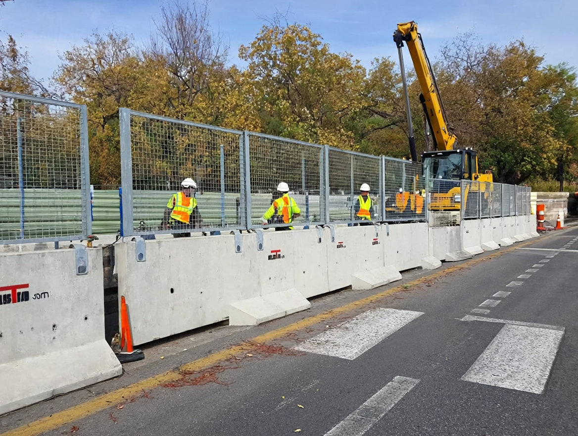 KLOSTAB répond également à des besoins spécifiques : barriérage de zones industrielles, sécurisation de sites nucléaires et militaires, protection périmétrique de dépôts. Grâce à la combinaison glissières béton + palissades jointives, la location de clôture provisoire conjugue stabilité, efficacité anti‑intrusion et esthétique contrôlée. Chaque configuration est étudiée pour limiter les nuisances, préserver les accès riverains et garantir des cheminements piétons clairs.